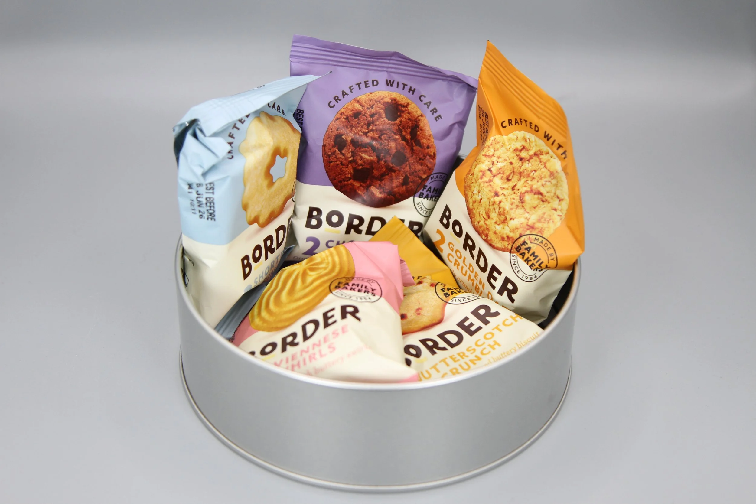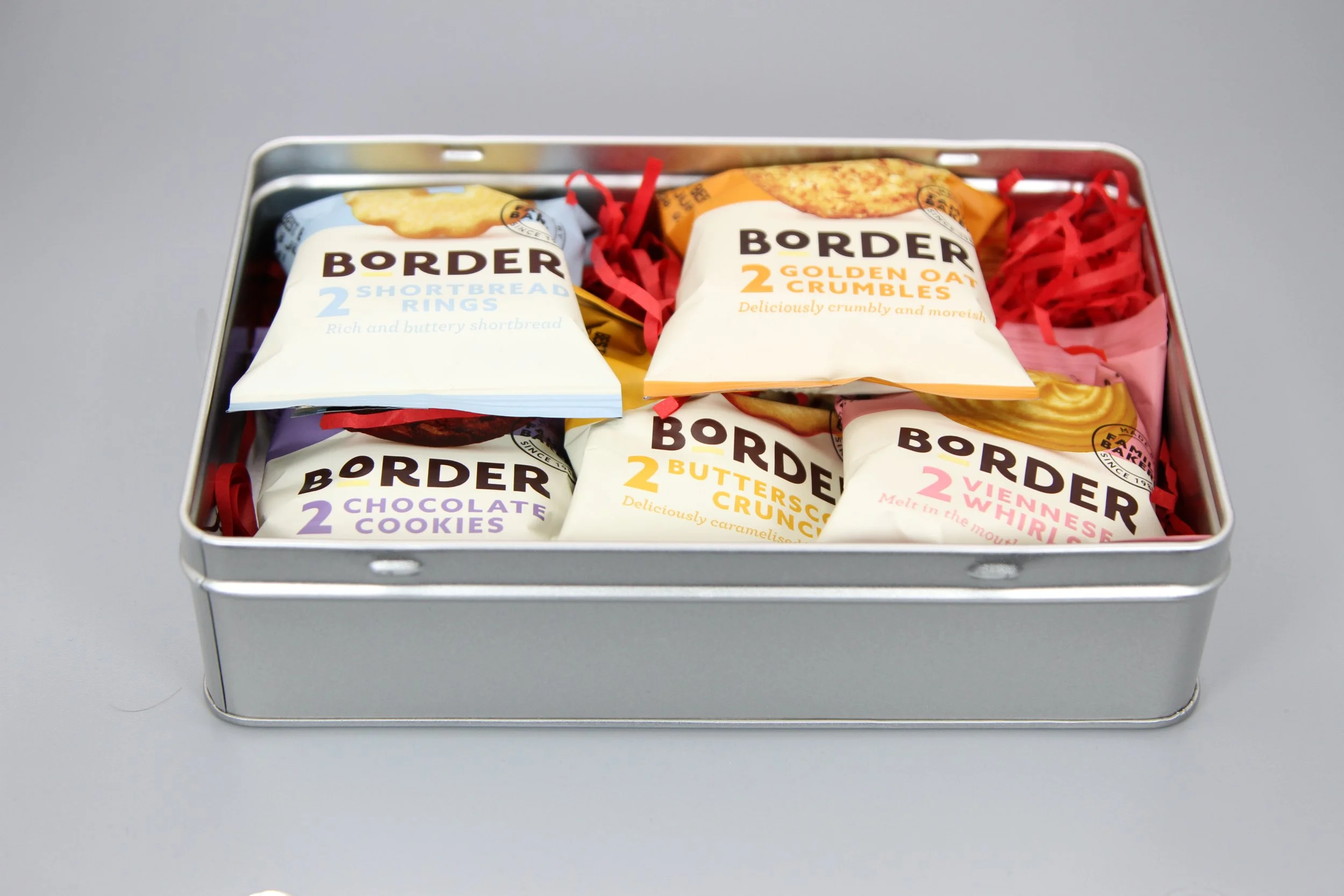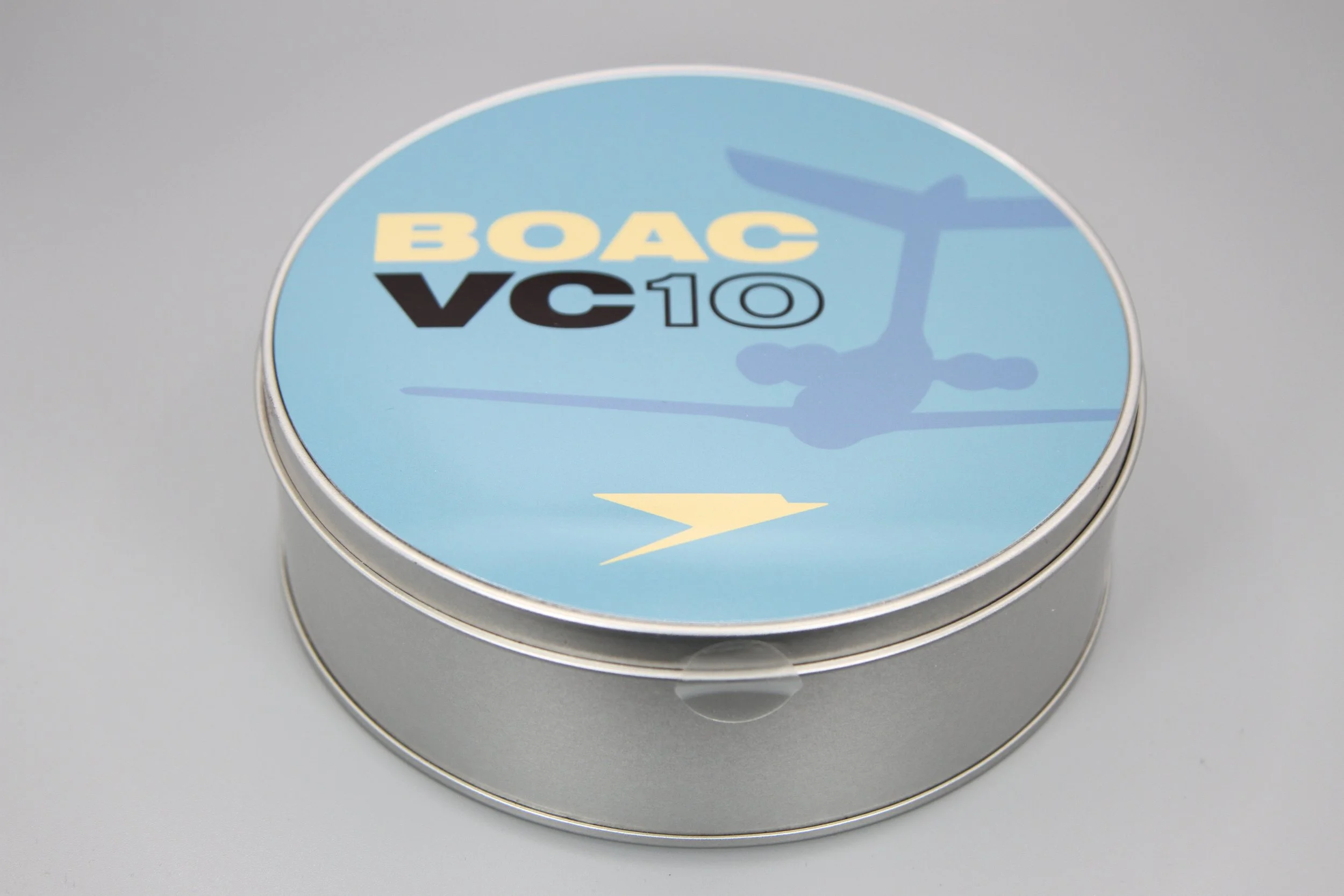 We’ve redrawn a BOAC luggage tag, given it a tweak to fit the lid of this tin and popped five packs of 2 Borders biscuits inside. So once the biccies have been demolished, the tin can be used for storing items that are currently gathering dust.
